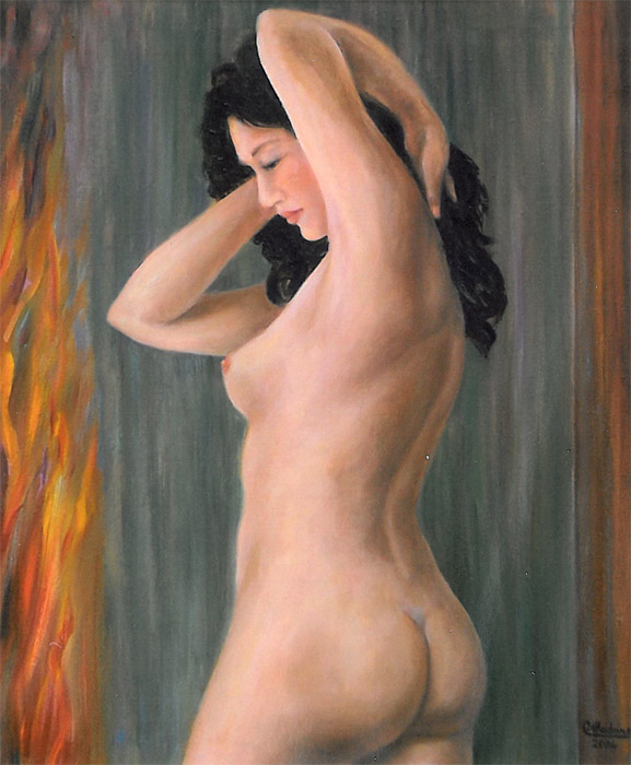 Alla luce del fuoco, 2006, olio, 58×78