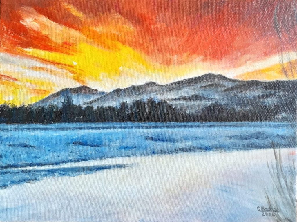 Tramonto sul Trebbia, 2024, olio, 40×30