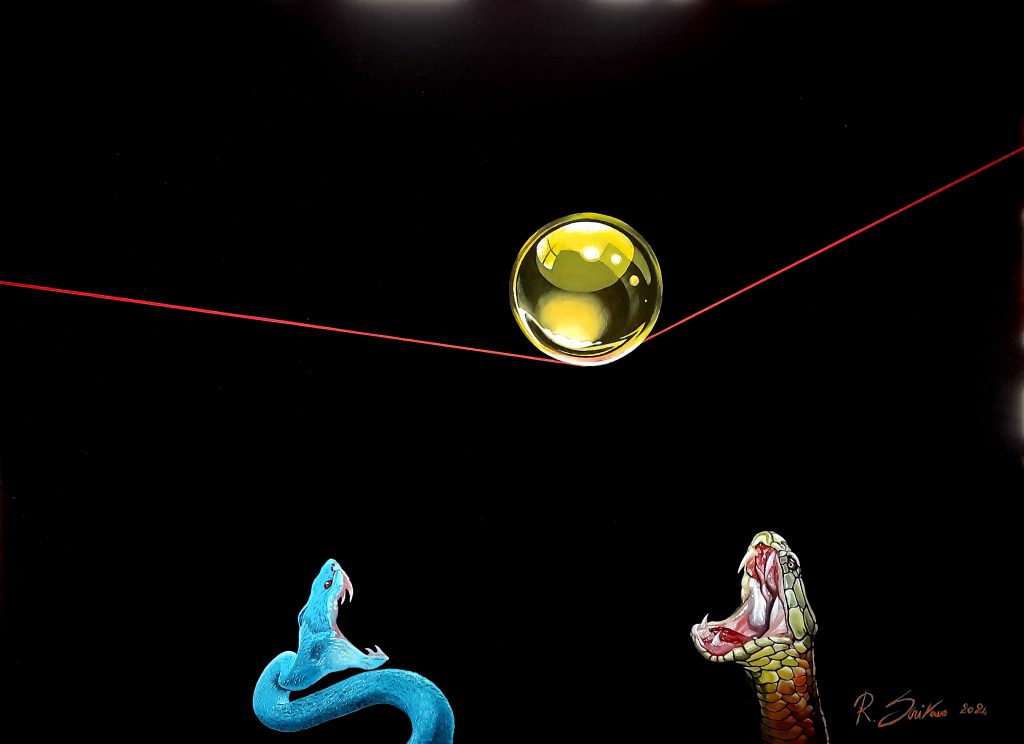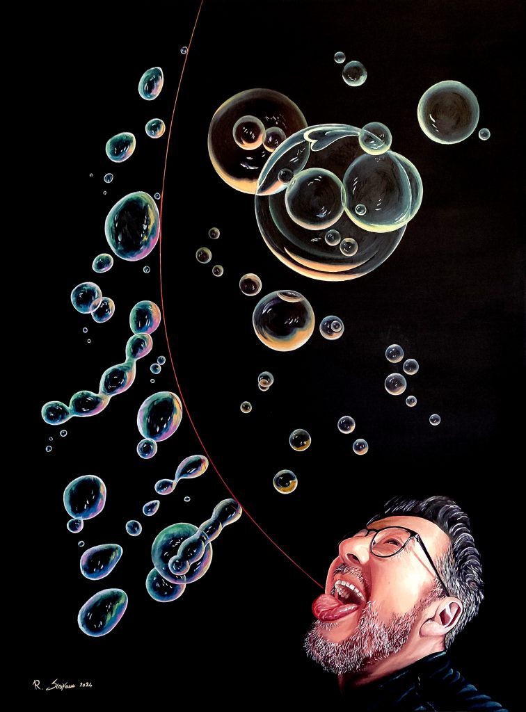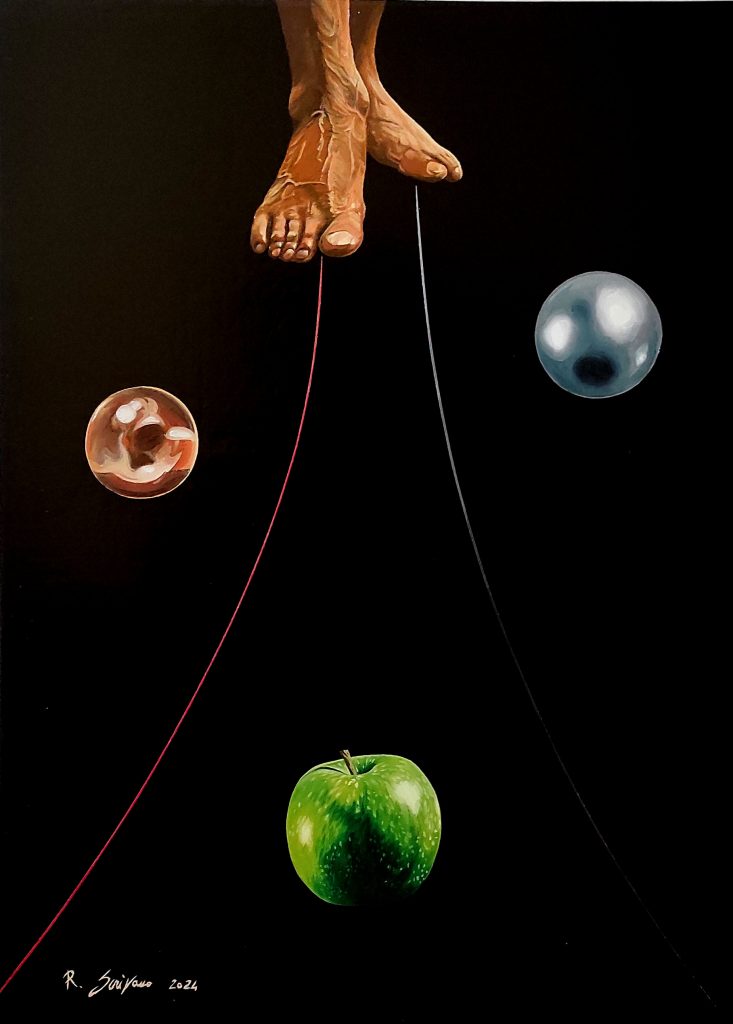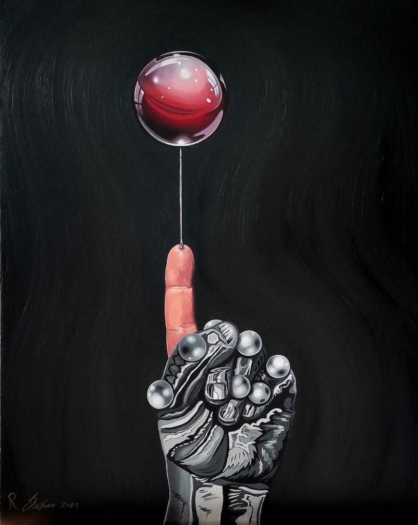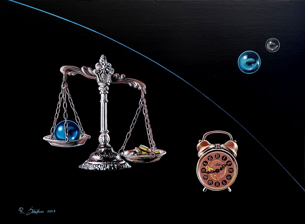 Tra il surrealismo di stampo novecentesco e l’ elevato potere mediatico del linguaggio pubblicitario, il linguaggio pittorico di Rosario Scrivano costituisce un interessantissimo esempio di coesione tra passato e presente, tra consapevolezza tecnica e manifestazione emotiva.