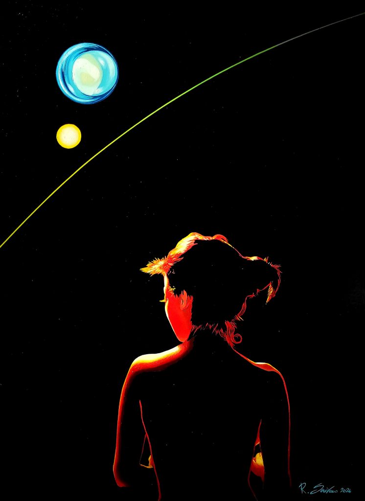 La crisi dei rapporti e talora l’ incomunicabilità uomo-donna passano senz’ altro fra incomprensioni psicologiche, sociali, caratteriali… ma non scordiamo la pericolosità di rapporti virtuali, cioè superficiali o poco sentiti. Scrivano in quest’ ardita metafora lancia dunque un monito: più spazio ai sentimenti, al dialogo e, perché no, alla corporeità per abbattere quell’impercettibile invero immensa distanza indotta dall’invasiva tecnologia.