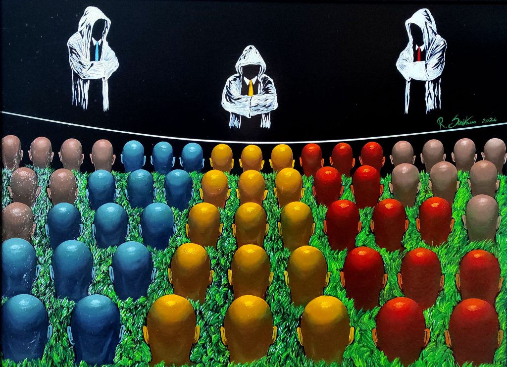 L’ opera presentata da Scrivano, “ Rapporti virtuali “ olio su tavola, meritava in effetti attenzione: